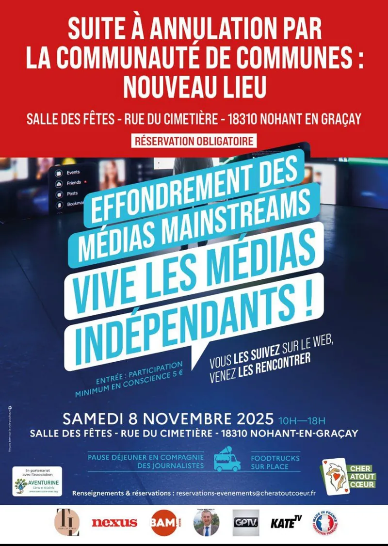 Suite au succès de l’évènement du 8 novembre 2025 organisé par l’association Cher Atout Cœur où toute notre équipe de bénévoles a su accueillir l’équipe des MEDIAS INDEPENDANTS, malgré toutes les tentatives d’entraves qui avaient été érigées trois jours avant l’évènement…